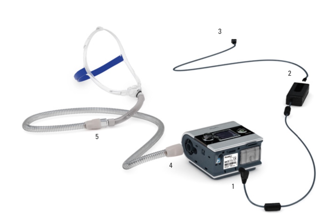 • Humidificador térmico H5i • Cubeta de agua del H5i • Tubo de aire estándar • Tubo caliente ClimateLine • Tubo caliente ClimateLineMAX • Unidad de suministro eléctrico de 90 W • Unidad de suministro eléctrico de 30 W (no es compatible con el H5i) • Paquete de baterías Power Station II